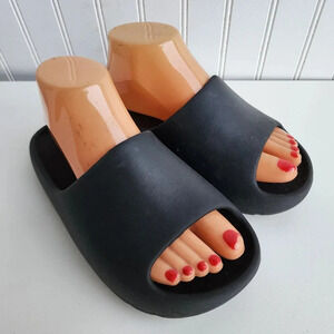 Unionbay Womens Black Thick Flexible Sole Slide Slip on Sandals Black Rubber 7