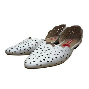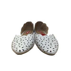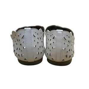 Unionbay Womens White Faux Leather Scalloped Collar Laser Cut Flats Size 10