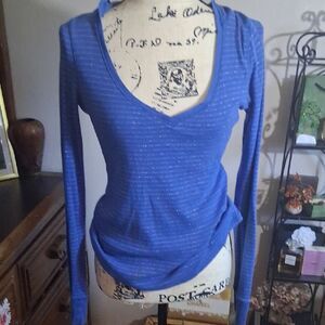 Unionbay Blue Silver Striped Hooded Women's Top - Size Large