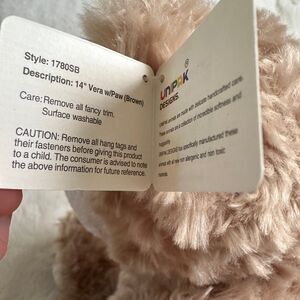 Unipak Cream Teddy Bear 14” Vera w/Paw Pawprints Plush Stuffed Animal
