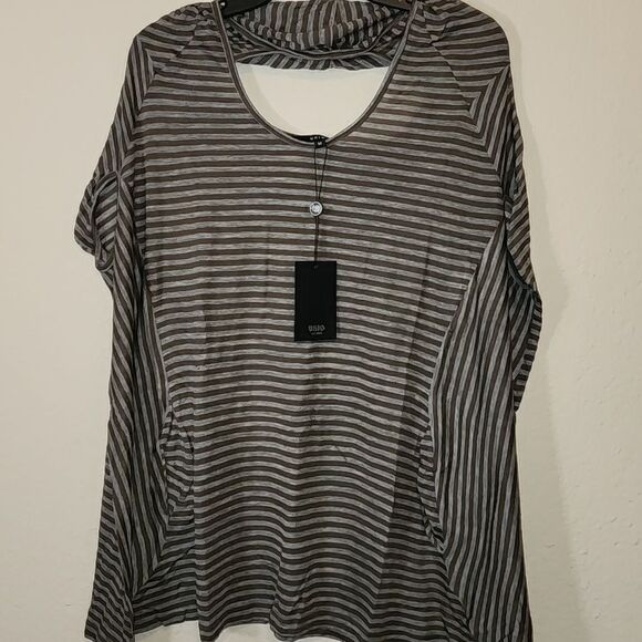 Uniq Green/ Gray Stripe Lightweight Poncho Style Top - Med