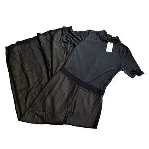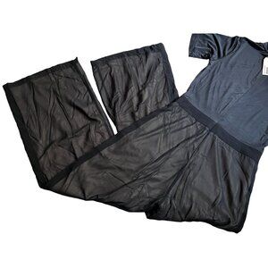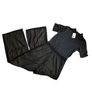 Uniq NWT Wide Leg Short Sleeve Jumpsuit Sz Large Womens Black Mock Neck