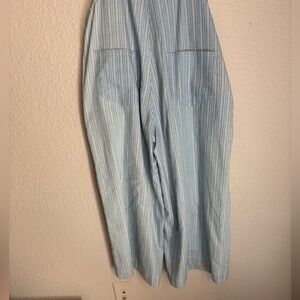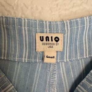 Uniq Overalls Jumpsuit Cotton Casual Woman Small Light Blue Striped Wide Leg