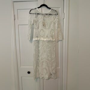 A beautiful sheer overlay lace dress! NWT. Does not come with slip. Let me know if you have any questions - open to offers!
