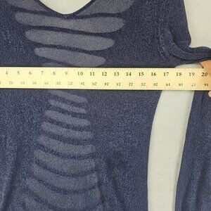 Uniq Top Womens M Blue Sheer Knit Strappy Back Bohemian Chic Long Sleeve Sexy