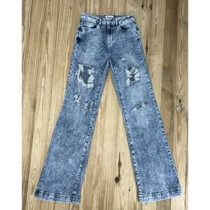 Uniq by Litz Streetwear Acid Wash Distressed Loose Fit Flare Jeans Sz 25 -1.