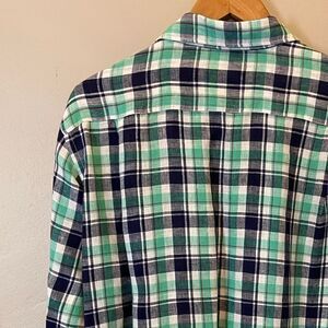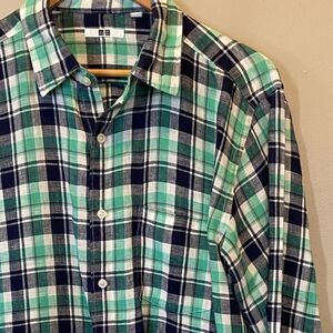 Uniqlo 100% Linen Green and Blue Plaid Men's Long Sleeves Button Down Shirt M