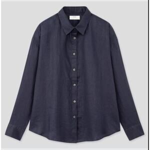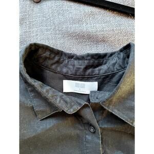 Uniqlo 100% Linen Long Sleeve Black Button Up