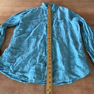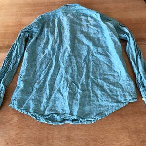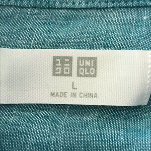 Uniqlo 100% Linen Shirt Men L Blue Button Up Pocket Long Sleeve Collared 17878