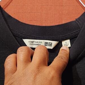 Uniqlo 100% Linen Women's Sz S Black T-Shirt Short Sleeve Relaxed Fit Top