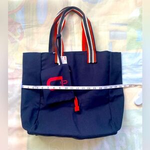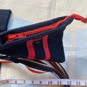 Uniqlo 69 Navy Canvas Tote 100% Cotton Double Handles W/ Zipper Pouch Un…