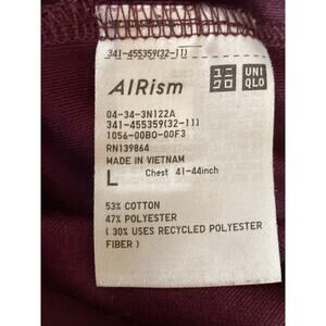 Uniqlo Airism Womens Burgandy Short Sleeve Crew Neck Basic Tee T-Shirt Top Sz L