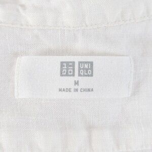 Uniqlo Band Collar Shirt Size Medium White 100% Linen