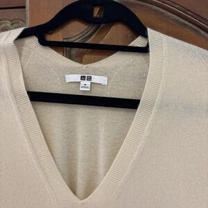 Chic beige V-neck knit from Uniqlo. Ideal for any season.