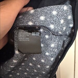 Chic Uniqlo jacket with black and white polka dots. Ideal for stylish comfort.