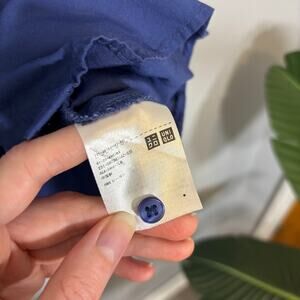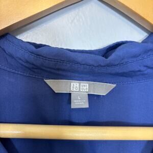 Uniqlo Blue Button Down Short Sleeve Blouse Relaxed Fit Top L | True Summer