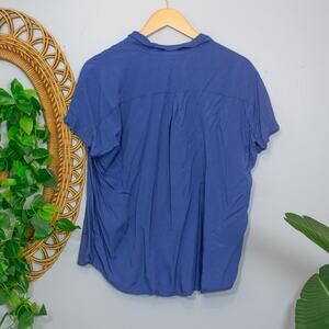 Uniqlo Blue Button Down Short Sleeve Blouse Relaxed Fit Top L | True Summer\