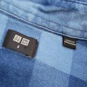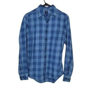Uniqlo Blue Long Sleeve 100% Cotton Plaid Button Down Shirt Men's Small
