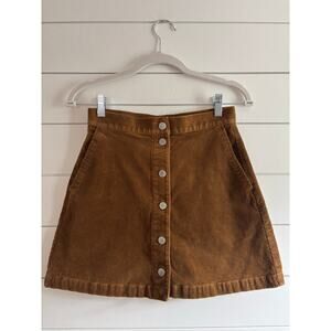 Uniqlo Brown Corduroy Mini Skirt Size 2 Button Front Pockets A-Line
