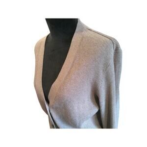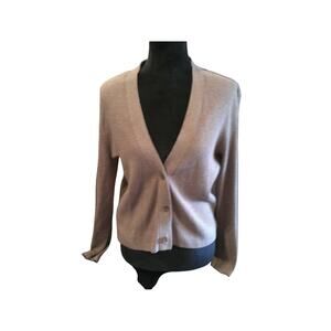 Uniqlo Brown Ribbed Cardigan Sweater Large Button Front V-Neck Rayon Blend