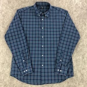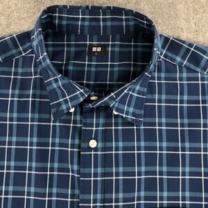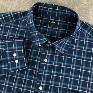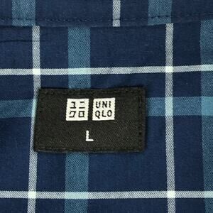 Uniqlo Button Down Shirt Mens Large Blue Plaid Long Sleeve Front Pocket Cotton