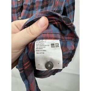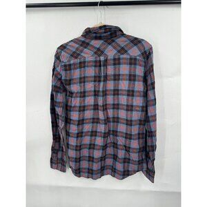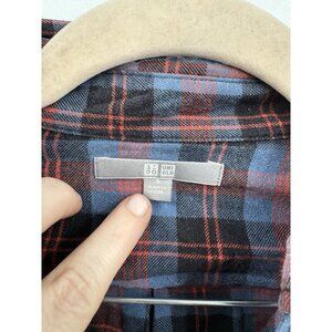 Uniqlo Button Up Shirt Women Small Purple Plaid Long Sleeve Flannel Western