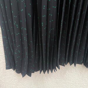 Uniqlo C Pleated Black long Skirt with Green polka dots Elastic waist Size L