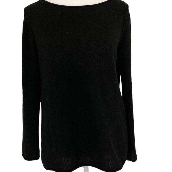 Uniqlo Cashmere Sweater Black size S Boat Neck Knit Exposed Seams