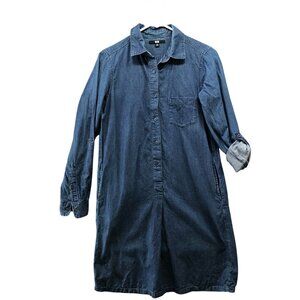 Uniqlo Chambray Shirt Dress XS Roll Tab Sleeve Tunic Blue Denim Cotton