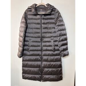 Uniqlo Coat Women's S Brown Ultra Light Down Hooded Puffer Warm Long Coat Jacket