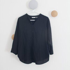 Uniqlo Collarless Button Down Long Sleeve Linen Top - Size Large