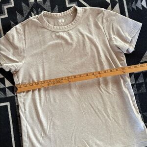 Soft oatmeal colored tee…100% cotton. In excellent condition and freshly laundered in natural, chemical free detergent.