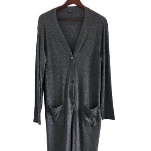 Uniqlo Dark Gray Charcoal Button Front Long Cardigan Pockets Women XL