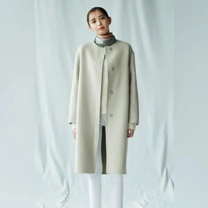 Uniqlo Double Face Collarless Wool Blend Coat Mint Green XS