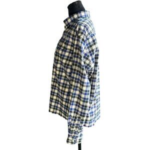 Uniqlo Flannel Raw Hem Button Down Size L Check Blue Black Casual Cotton