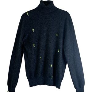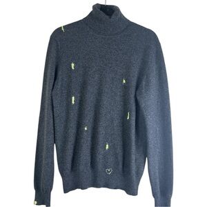 Uniqlo Fluorescent Yellow Scatter Stitch Dark Heather Grey Turtleneck Cashmere Sweater Size: Small
