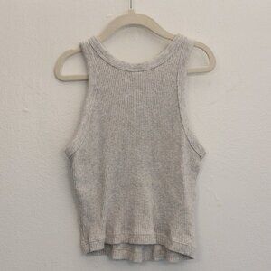 Uniqlo Gray Ribbed Cropped Tank Top Size XS Racerback Style Minimalist Fit