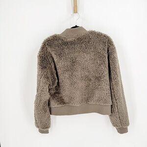 Cozy fleece jacket. Soft texture. Full zip closure. Ribbed cuffs and hem.