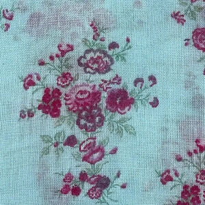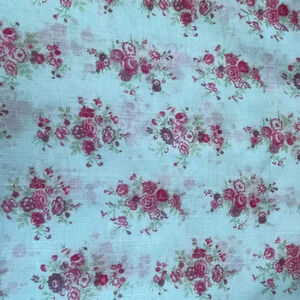 This lightweight, light-colored feminine scarf is made of washable polyester and is patterned with dainty old-fashioned pink flower bouquets. The color is a light, slightly aqua blue (see pic 4). A classic rectangle-shaped scarf, this is worn easily at the neck or tied up around your head. A very sweet and old-fashioned pattern. Limited edition sold at UNIQLO.