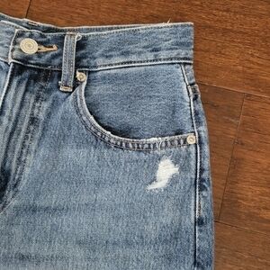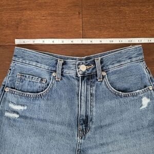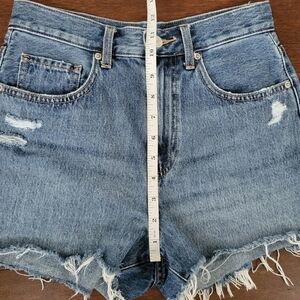 Uniqlo High Rise Distressed Cut-Off Raw Hem Denim Shorts Womens Size 25 Med Wash