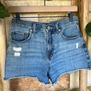 Uniqlo High Waisted Vintage Wash Distressed Frayed Hem Denim Jean Cotton Shorts