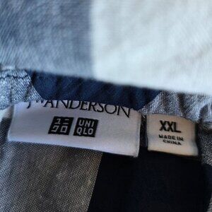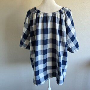 Uniqlo JW Anderson Navy White Check Top Blouse Cotton Linen Boho Women Size XXL