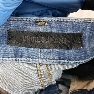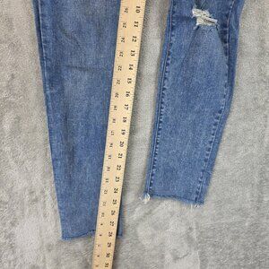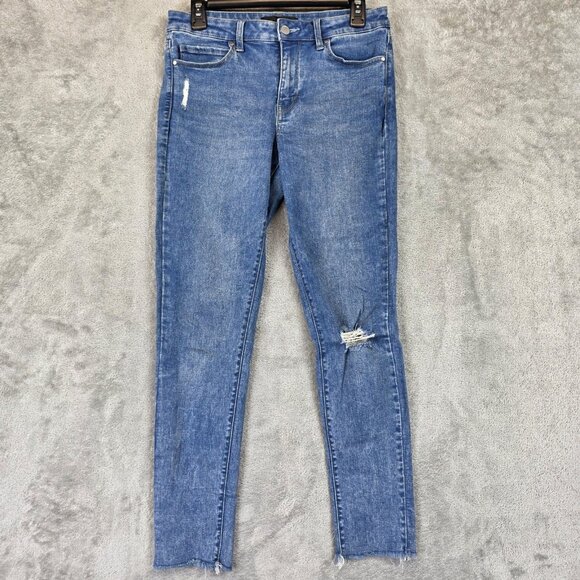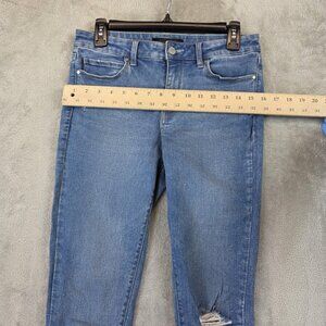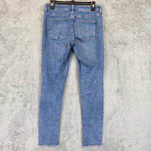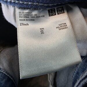 Uniqlo Jeans Womens 27 Blue Skinny Tapered Ultra Stretch Distressed Raw Hem
