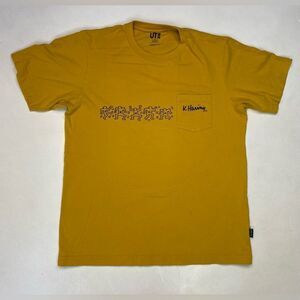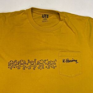 Uniqlo Keith Haring Art Graphic Pocket T-shirt Men Medium Yellow Short Sleeve