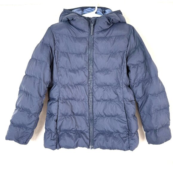 Uniqlo Kids Puffer Lightweight Full Zip Hooded Nylon Jacket Girl Boy Size 5 6 Blue