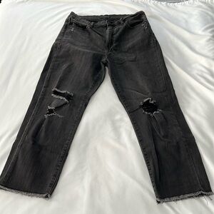 Uniqlo Light Black Distressed Raw Hem Cropped Jeans