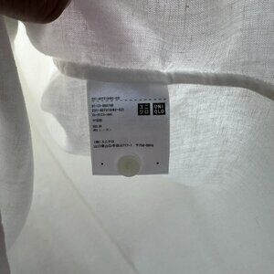 Uniqlo Linen Short Sleeve Button Up Blouse White GUC Women Size Small Hi Low Top