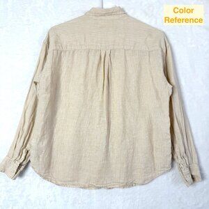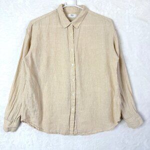 Uniqlo Linen Striped Button Up Blouse Shirt Womens M Yellow