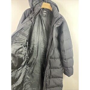 Uniqlo Men Seamless Down Long Coat Water Repellent Hooded Puffer Jacket Black M