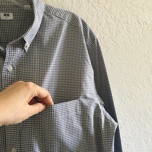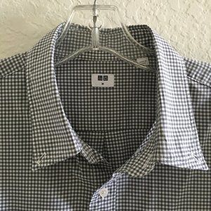 Uniqlo Mens Button Down Casual Shirt Checker Front Pocket Size M Grey